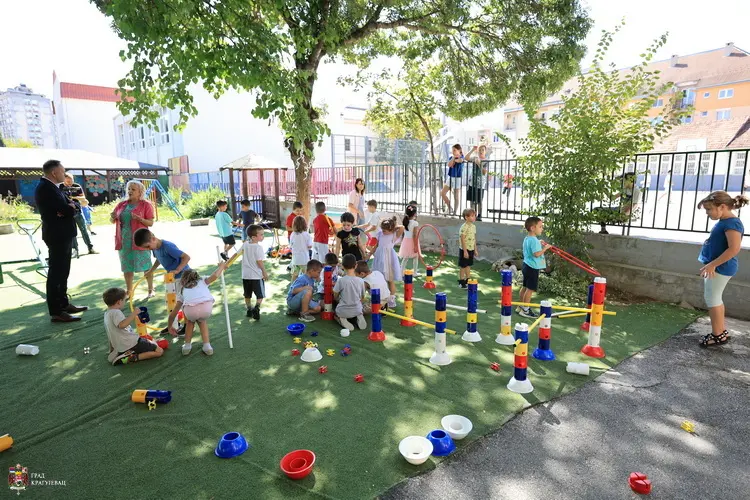 U okviru podrške i unapređenja uslova za fizički razvoj najmlađih u predškolskim ustanovama, Predrag Stevović, član Gradskog veća za sport i obrazovanje, posetio je vrtić „Naša radost“ i tom prilikom uručio novi sportski poligon.